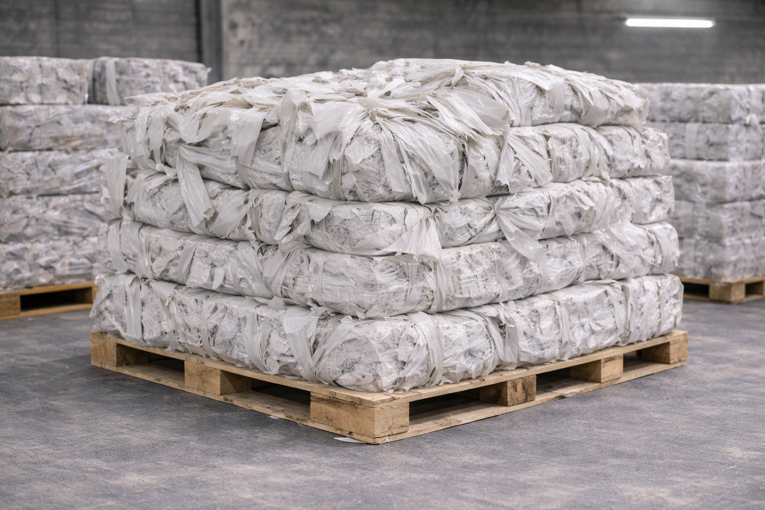 Compactação em fardos padronizados para logística e armazenagem.