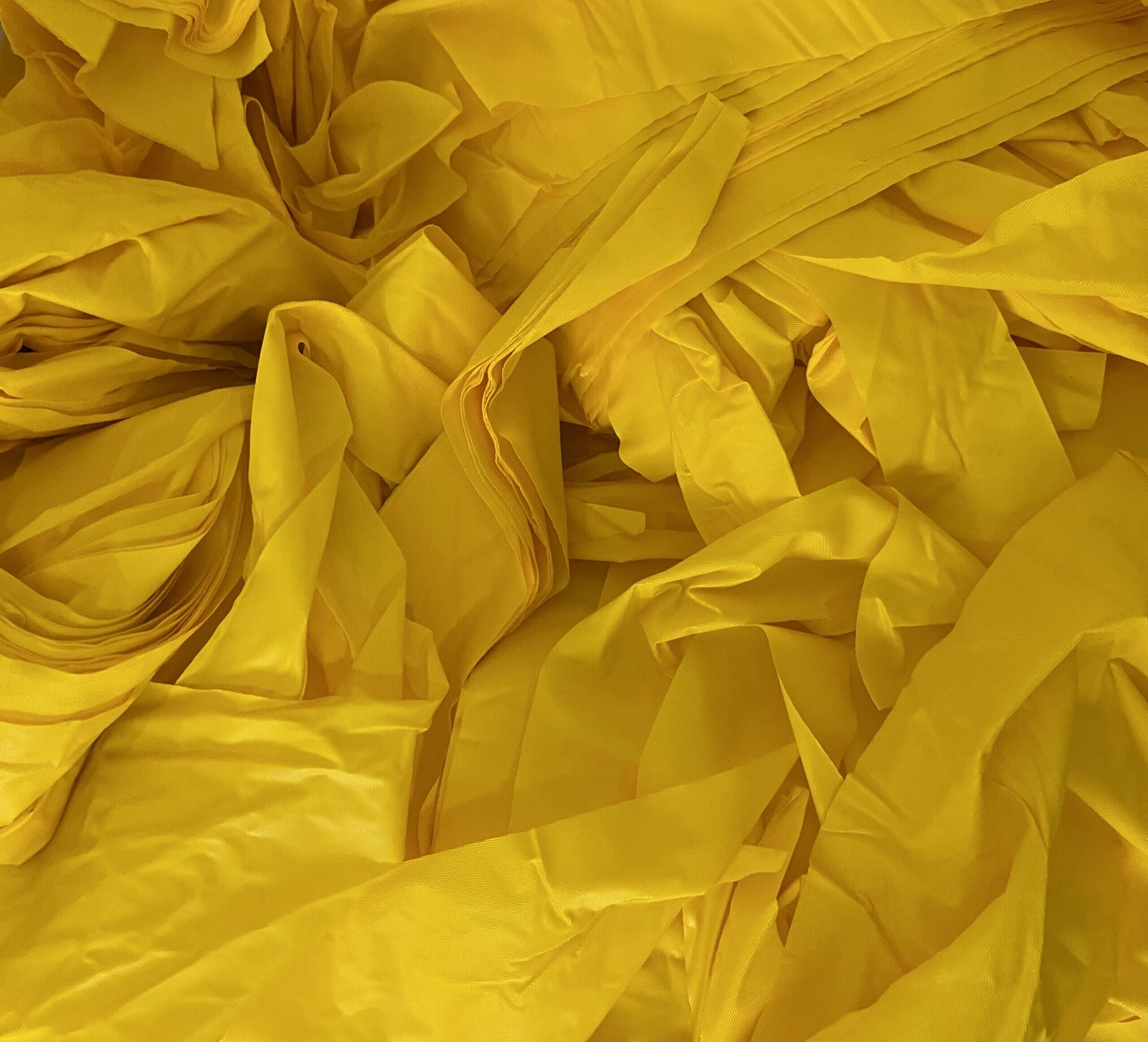 de poliéster, resistente e flexível, proveniente de aparas industriais para reciclagem e reutilização.